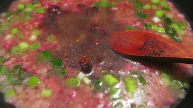 - Подправям със сол и черен пипер, добавям ракиените стафиди и намалявам котлона на средна мощност.