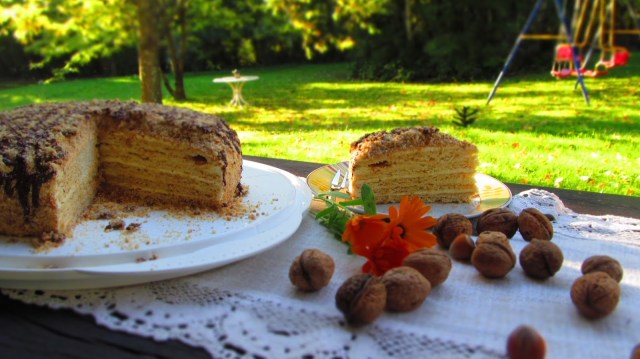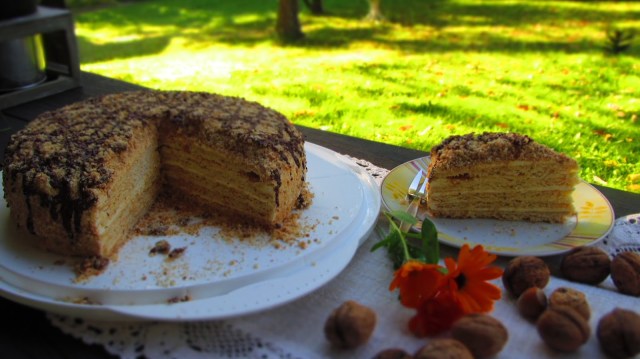 Отдавна бях хвърлила око на чешка медена торта, а пък разнообразието от рецепти е огромно. То се оказа, че и руската, украинската, румънската медени торти са все на този принцип. Спрях се на рецептата на чешката фирма Медокс, защото направата и продуктите ми бяха достъпни, а и те бяха с достатъчно опит.