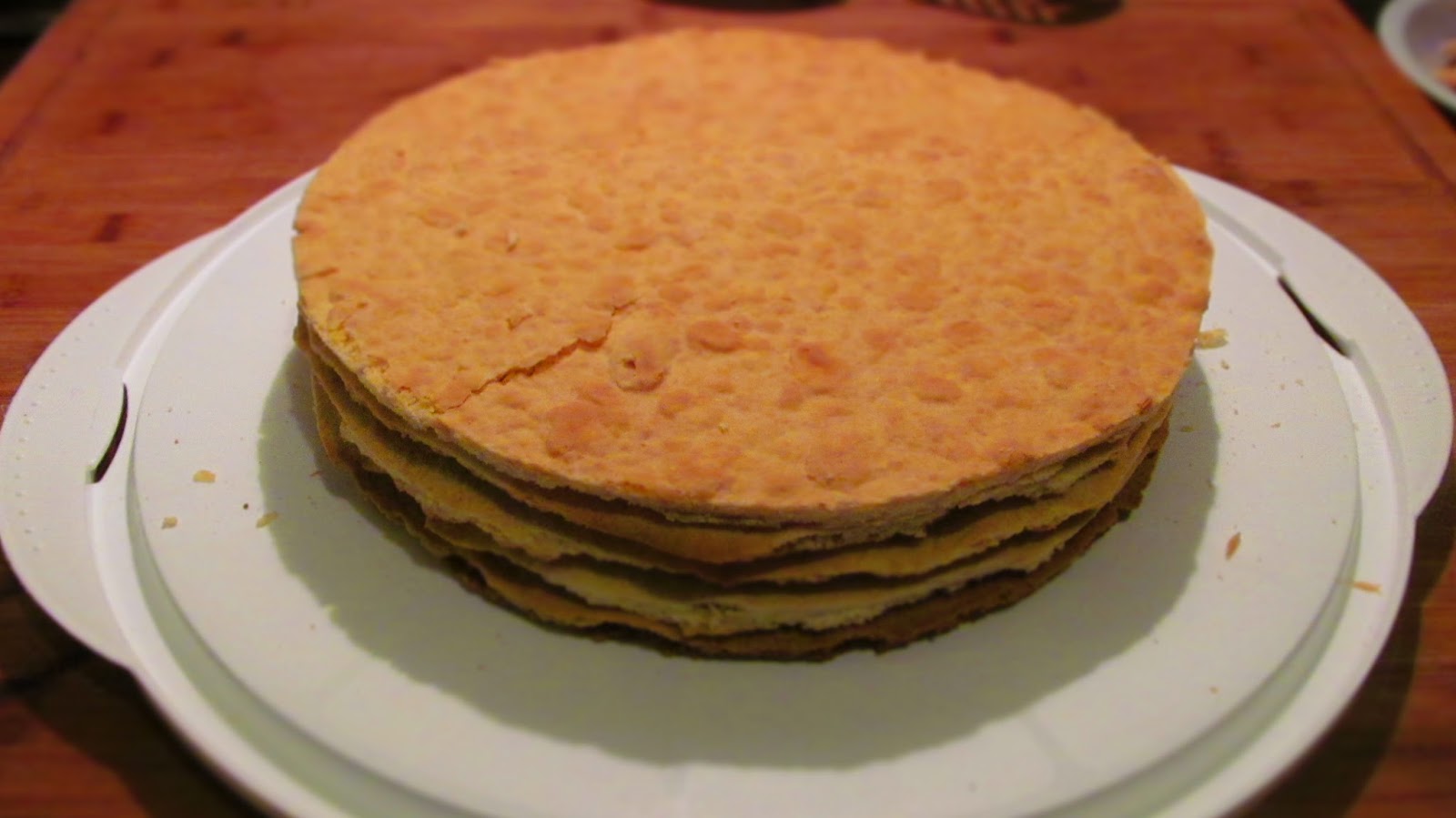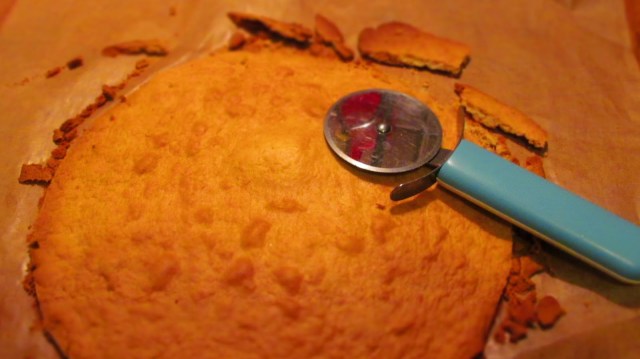 • Хубаво е докато са топли корите да се отрежат в кръг с размер 22 см. Възможно е изрязването и на студени кори, но трябва да се внимава защото стават чупливи.