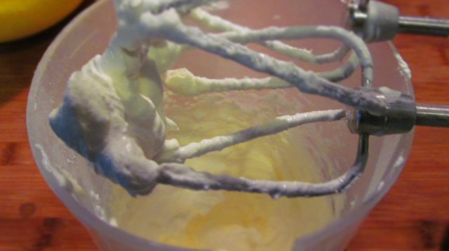 • Добавям кондензираното мляко и разбивам минимум 5 минути до получаването на хубав и пухкав крем.