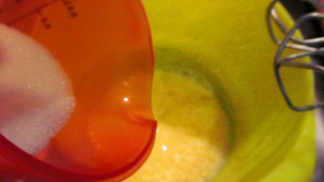 • Добавям захарта. Бъркането на парна баня продължава.