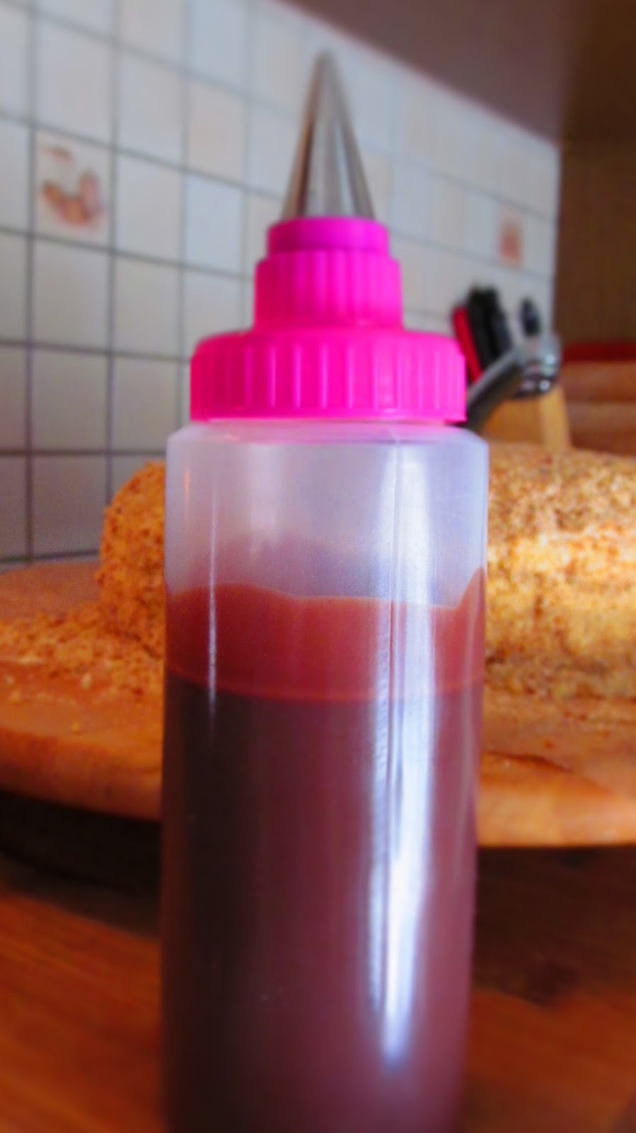 • Изсипвам течния шоколад в това меко шише с тънък накрайник с дупчица.