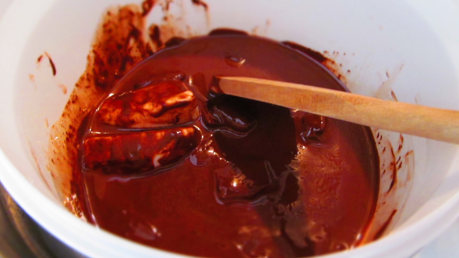 • Разтопявам шоколада и палмовата мазнина на водна баня.