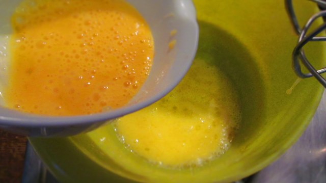 • Добавих предварително разбитото яйце и разбиването продължава.