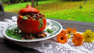 Сервирам пълнените тикви, поляти с ореховото масло. А то е много подходящо допълнение към ястието.
