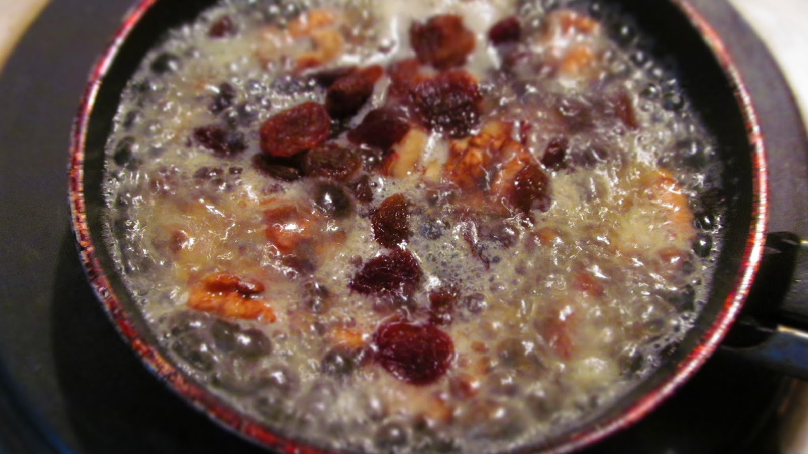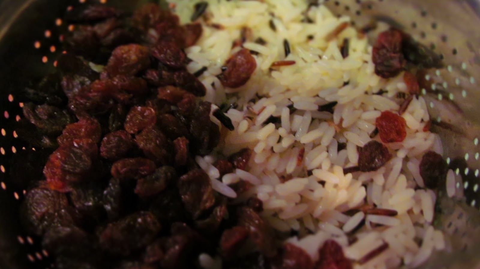 - Смесвам готовия ориз с 80 гр. от стафидите.