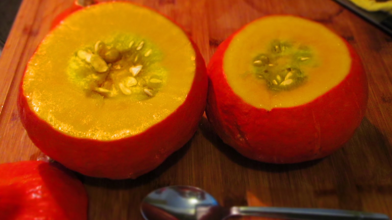 - С помощта на супена лъжица издълбавам семките и оставям стени с дебелина около 1,5 см.
