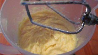 - Разбивам в купичка яйцата с млякото, индийското орехче, сол и черен пипер. На тънка струйка и с постоянно разбъркване, добавям към пюрето.