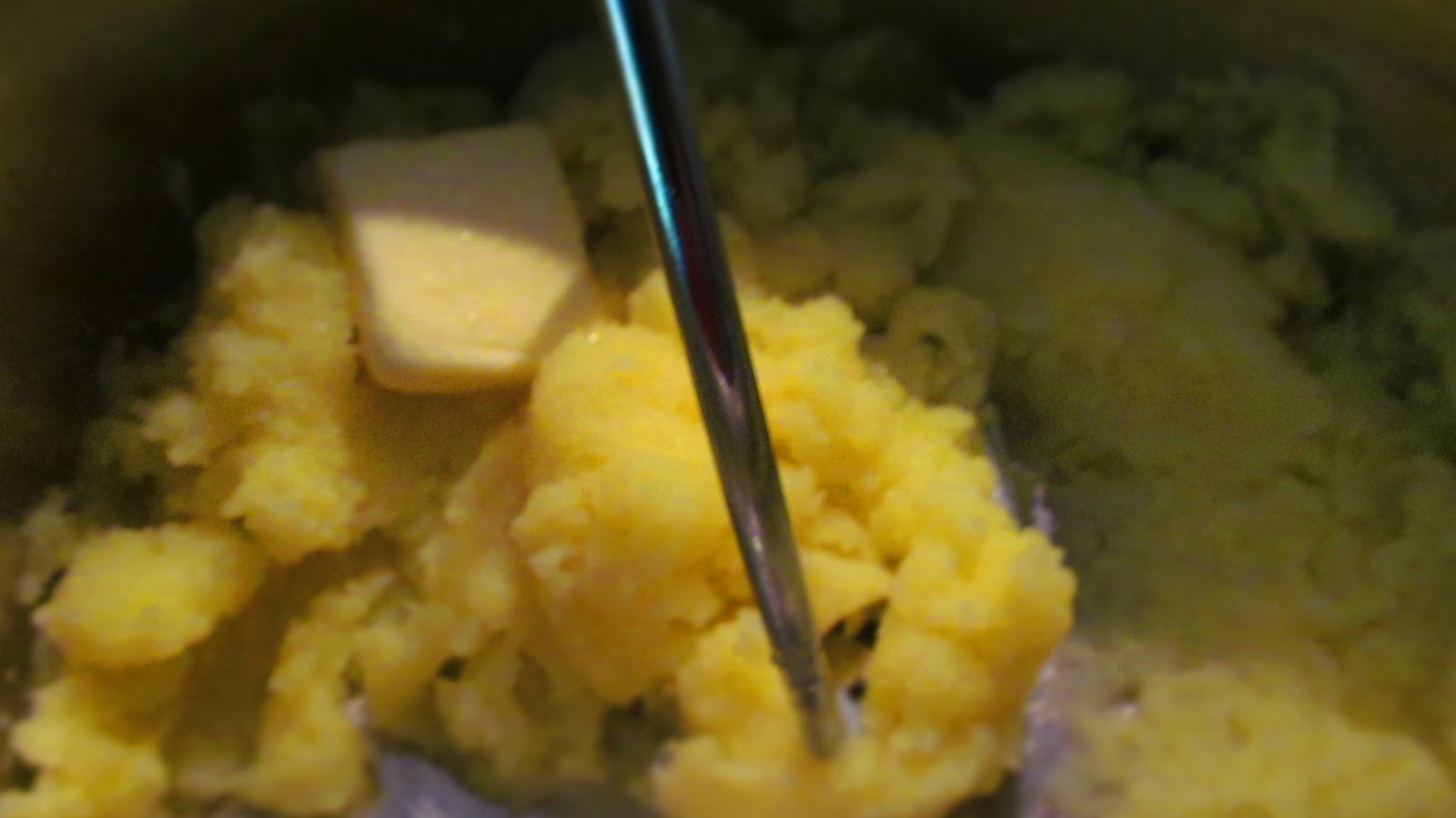- Към все още горещите картофи добавям кубчето масло и разбърквам, докато се разтопи.