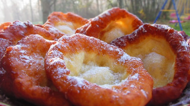 Сервирам вкусните мамини мекици поръсени обилно с пудра захар и пържа, докато всички присъстващи са сити! По-добре да останат, отколкото да не са достатъчно!