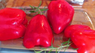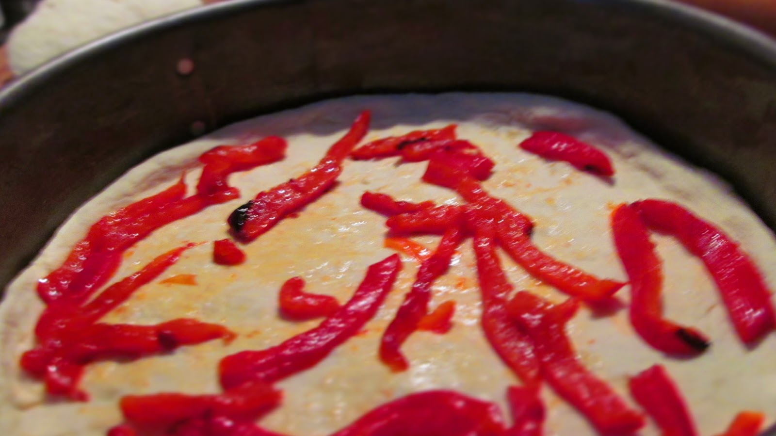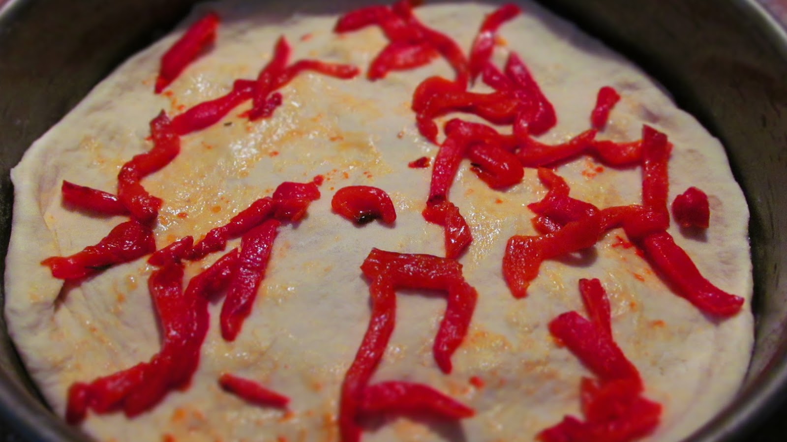Сервирам това много вкусно хлебче с печени червени чушки – горещо!