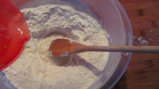 - В купа смесвам брашното, солта, захарта и маята. Правя кладенче и добавям топлата вода и с бавно разбъркване и постепенно добавяне на брашното замесвам тесто, което когато се оформи на топка.