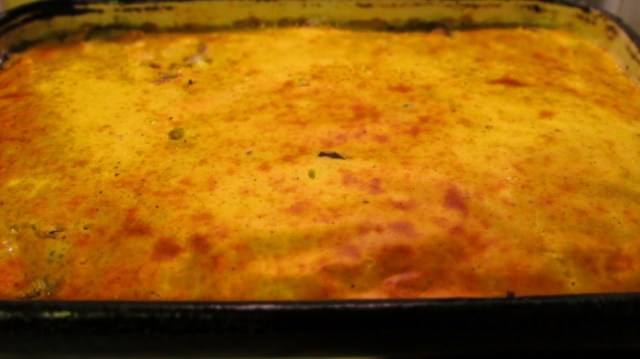 - Подравних заливката и отново върнах тавичката във фурната.