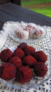 - Половината от топчетата овалвам в какао, а другата половина в кокосови стърготини.
