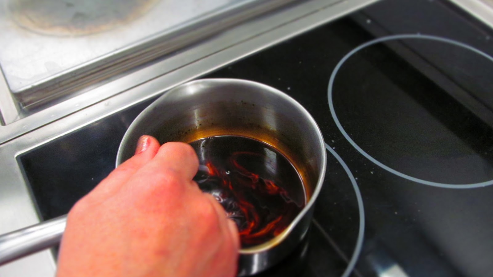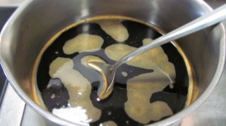 • Захарта се изсипва в касерола, намокря се с малко вода  и се поставя на котлона да се разтопи. Готова е, когато при отделянето от котлона все още прави балончета.