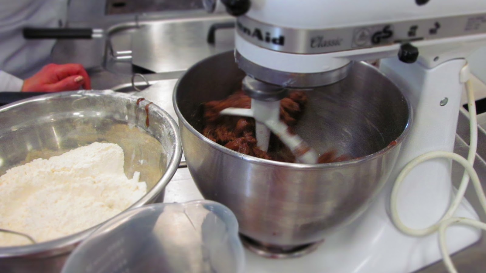 Ето тук приготвяме и вкусните трюфели, където овалването им в разтопен шоколад ме впечатли много, а  младата дама е Марта, старателно попиваща всичко показано от Геновева!