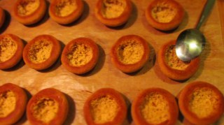 - Запълних кухините на всички изстинали меденки с пълнеж, като се стараех да разпределя цялто количество равномерно.