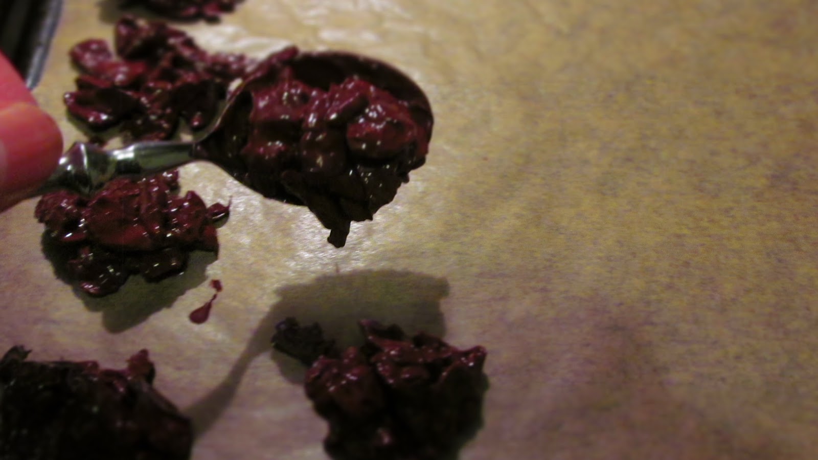- С помощта на две чаени лъжички изсипвам бонбонената смес на купчинки върху хартия за печене.