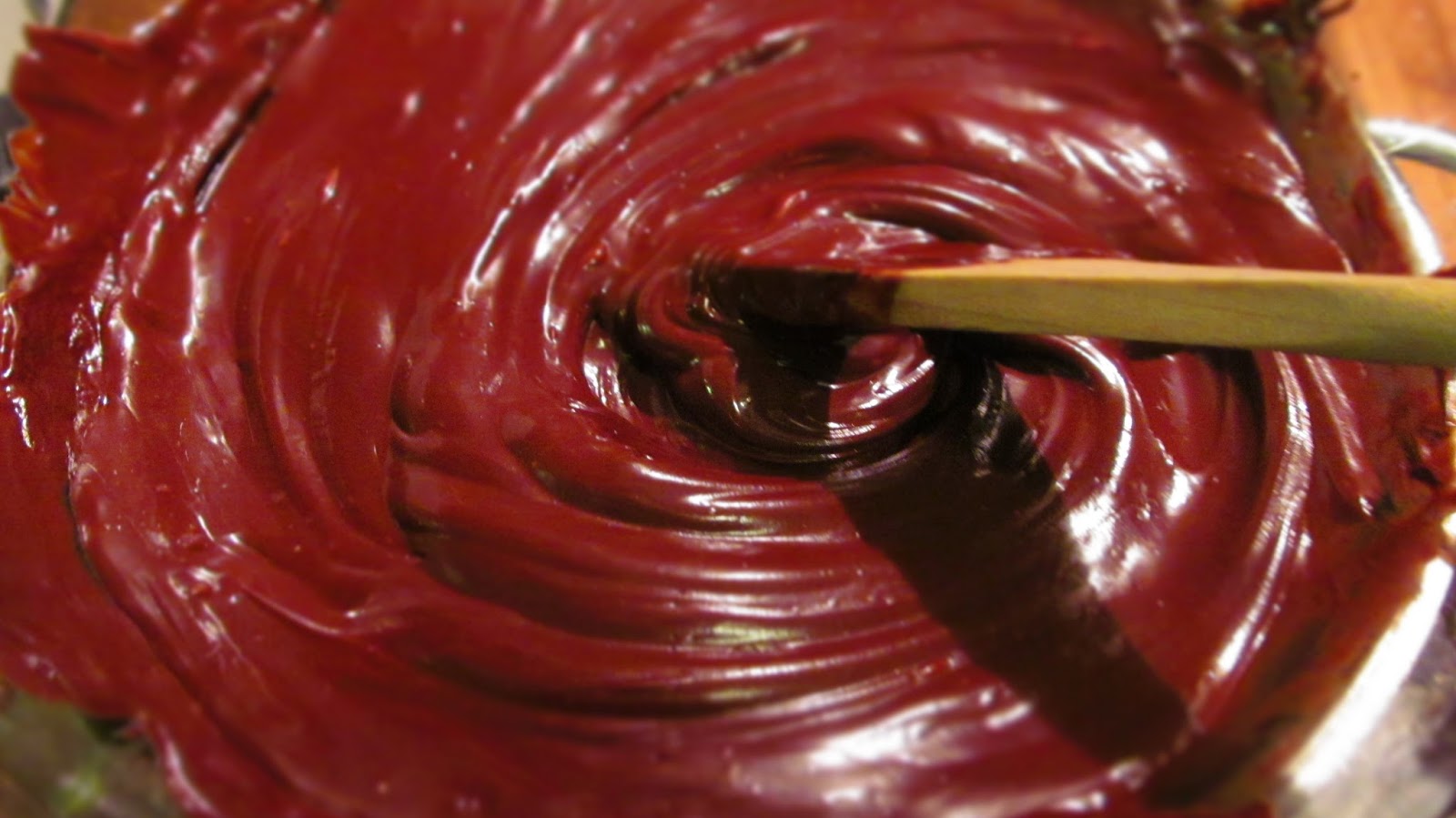 - Щом водата заври, свалям тенджерата от котлона и бъркам постоянно шоколада. Много бързо той е течен.