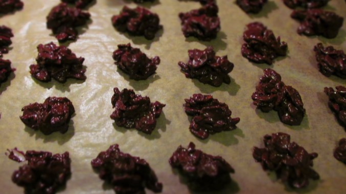 Може би ги познавате, а може би и ги обичате! Това са Crossies. Нямам представа как се превеждат на български език, но аз много ги обичам и когато видях лесния начин на направа в ARD Buffet веднага ги възпроизведох у дома. Нужни са ни само шоколад, корн-флейкс и ядки по желание.
