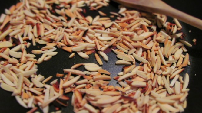 - Бадемовите пръчици запичам за кратко в сух тефлонов тиган. Ако нямате ядки, може и без тях.