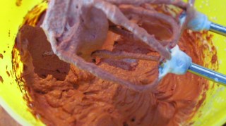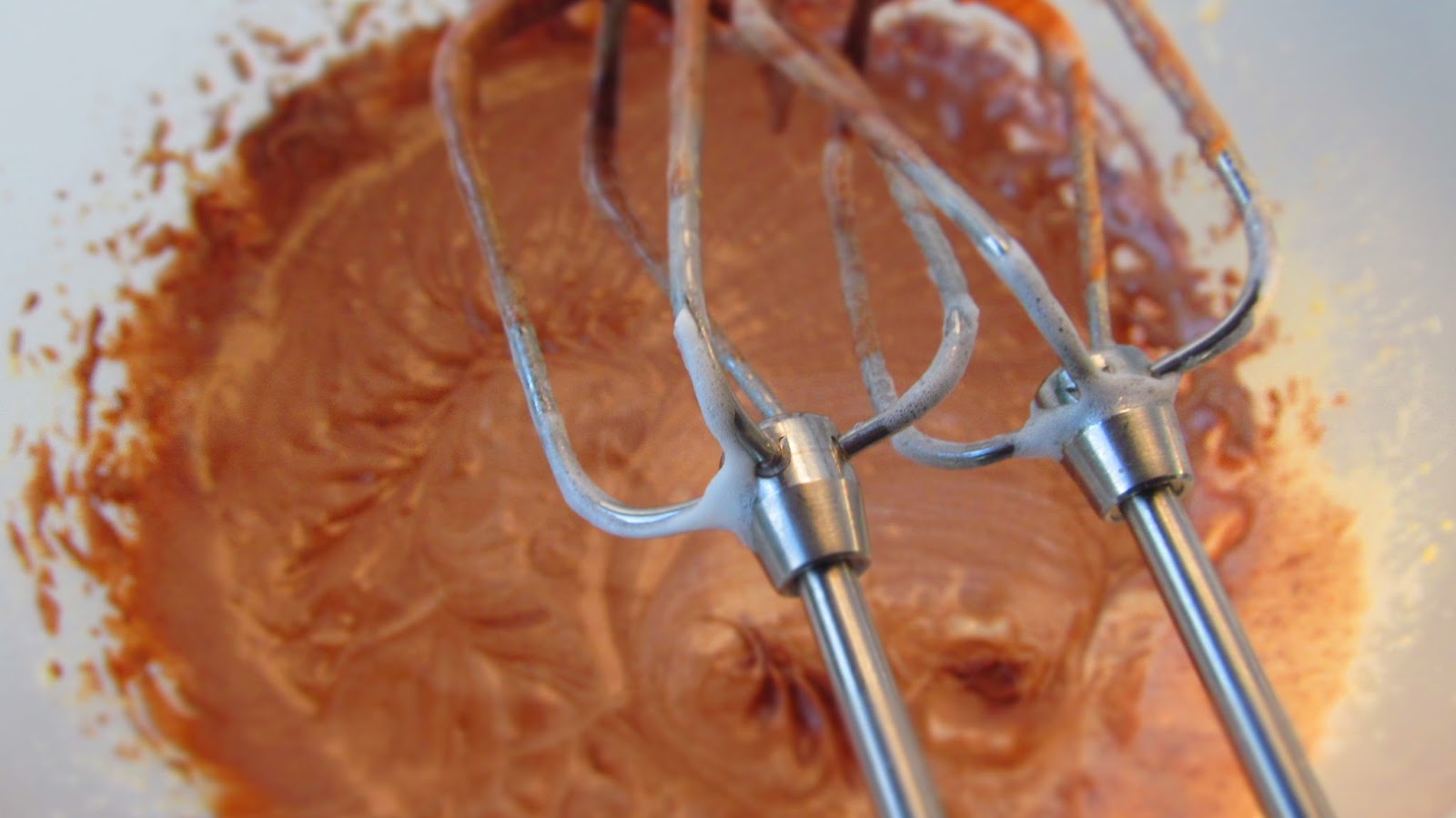 - Добавям белтъците към шоколадово-яйчената смес като редувам с брашното.