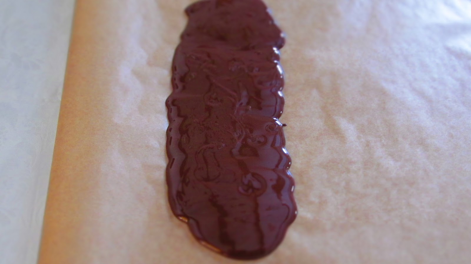 - Разтопявам останалото количество шоколад и намазвам на лента върху хартия за печене.
