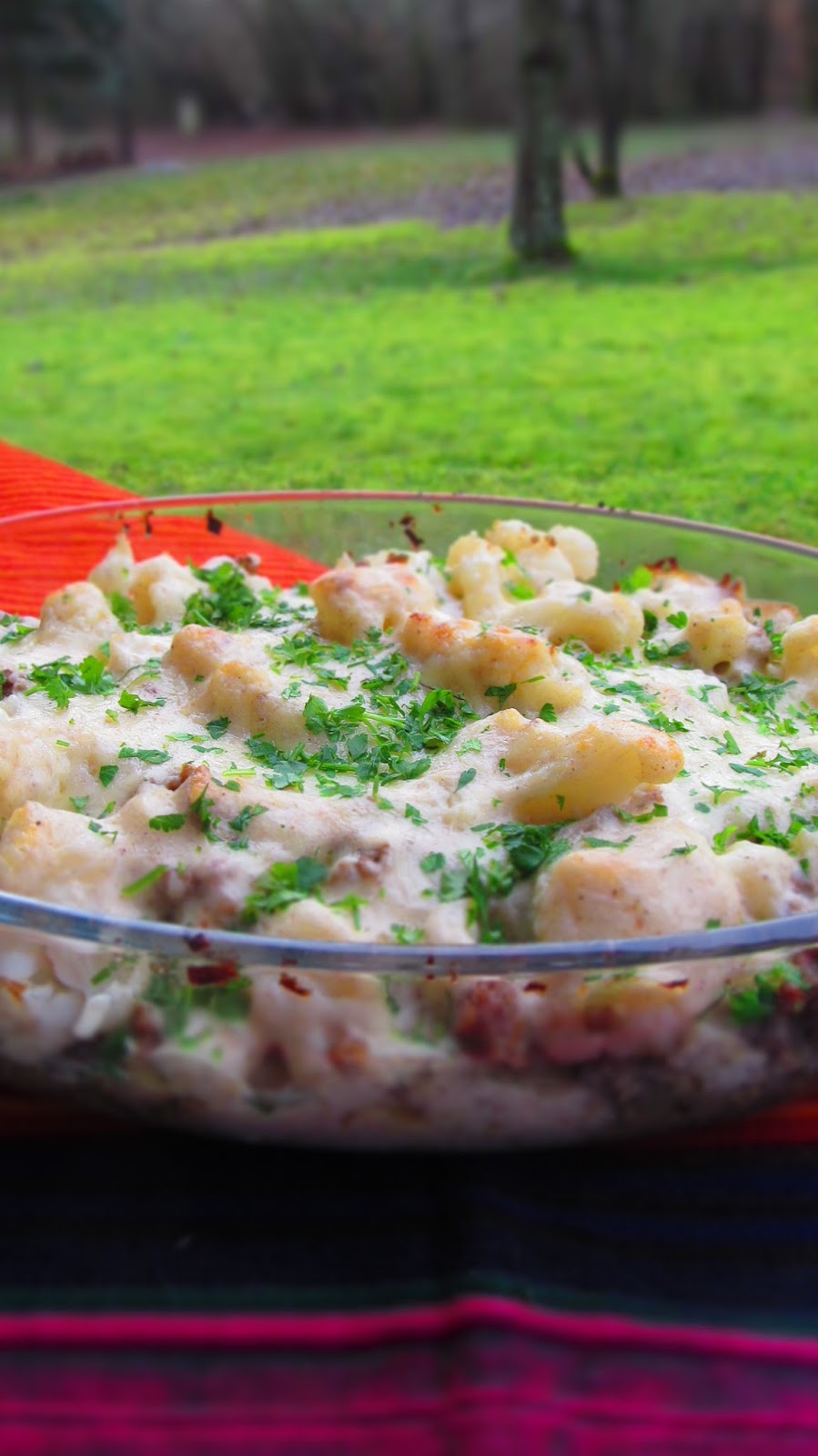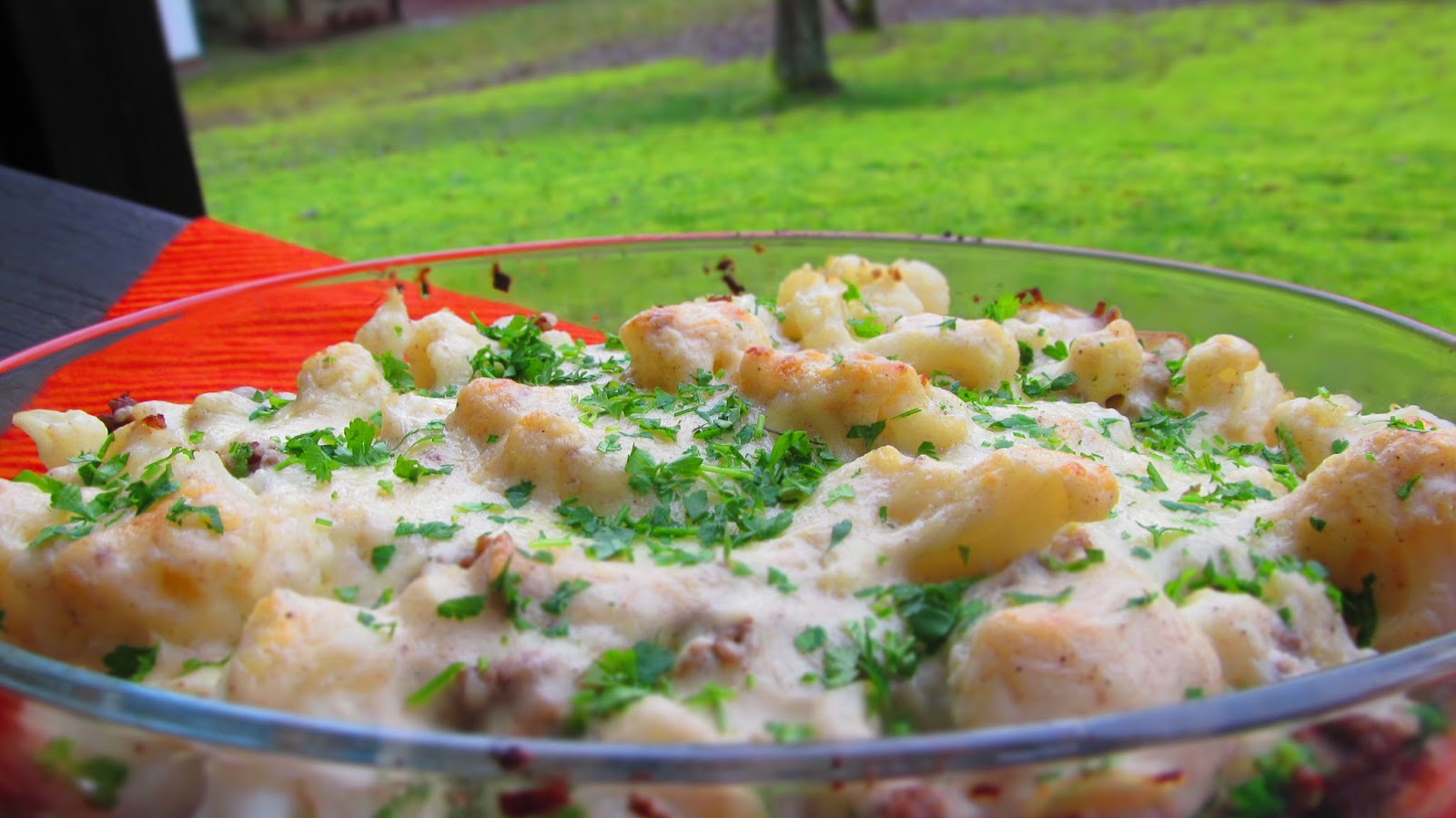 Редовните читатели познават вече Карфиолената бомба и Карфиолените бомбички. Сега е ред на тази вкусна Карфиолена запеканка, чиято рецепта прочетох в Küchengötter.