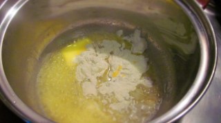 • Изпържвам брашното до златисто като разбърквам непрекъснато.