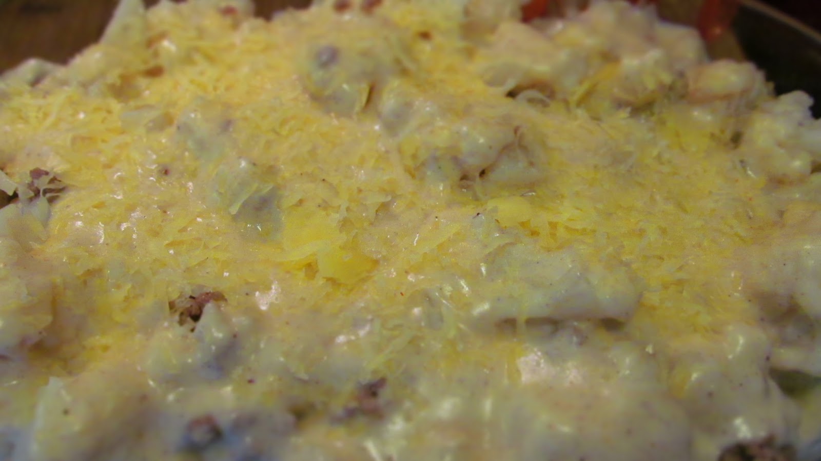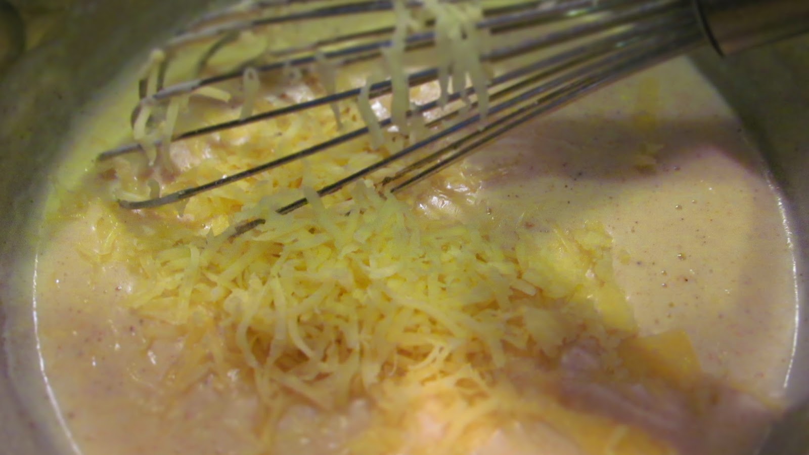 • Настъргвам половината от кашкавала в соса и разбърквам.