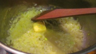 - В разтопеното масло задушавам до омекване ситно нарязания лук.