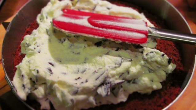 - Намазвам цялото количество разбита сметана върху черешовия крем.