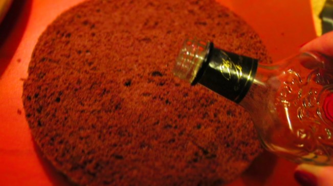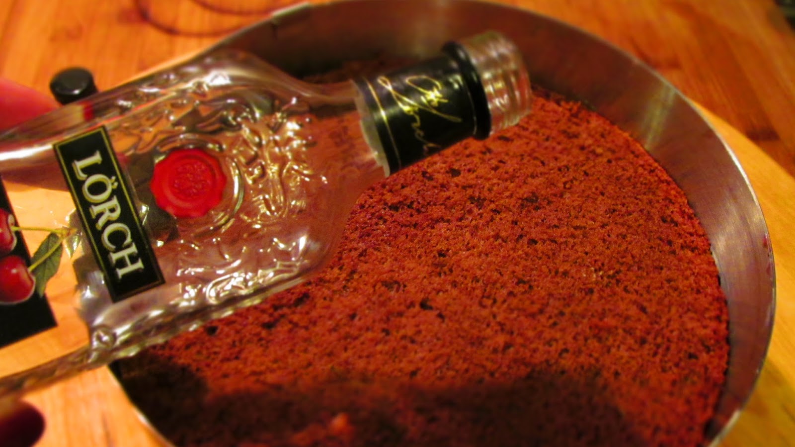 - Покривам с втория блат. Притискам леко и напръсквам блата с част от черешовата ракия.