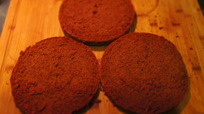 - Залепям от шоколадовите люспи странично на тортата и само едно малко кръгче в средата. Така спазваме декорацията на оригиналния вариант на торта Шварцвалд.
