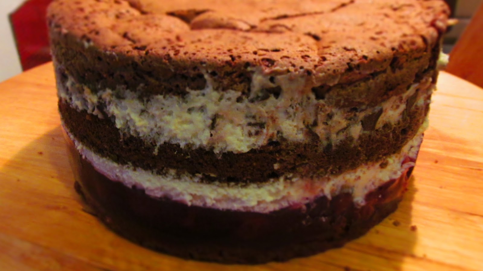 - Изсипвам изстиналия черешов крем и оставям на студено да стегне.