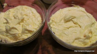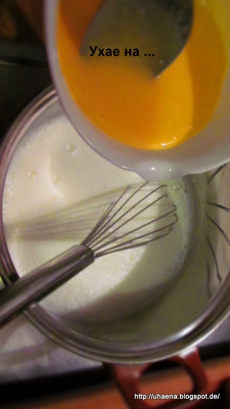 - Лъжица по лъжица и с непрекъснато разбиване, добавям изстиналия пудинг към маслото.