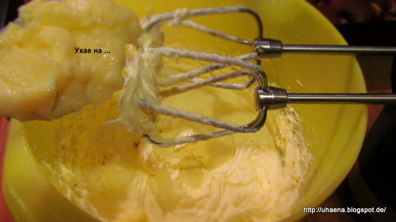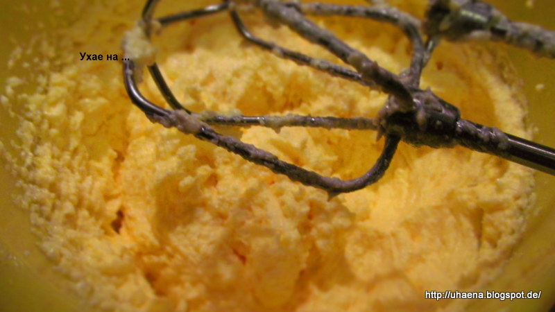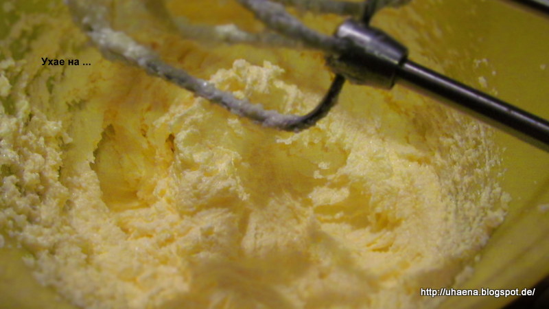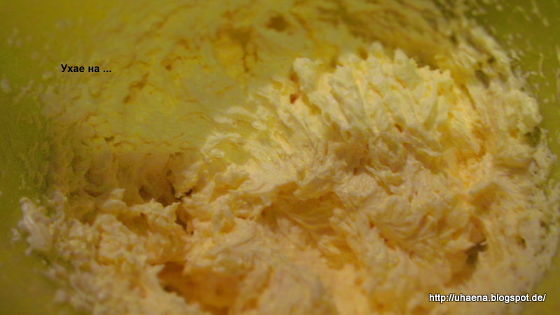 - Разбивам 250 гр. меко масло с миксера до пухкав крем.