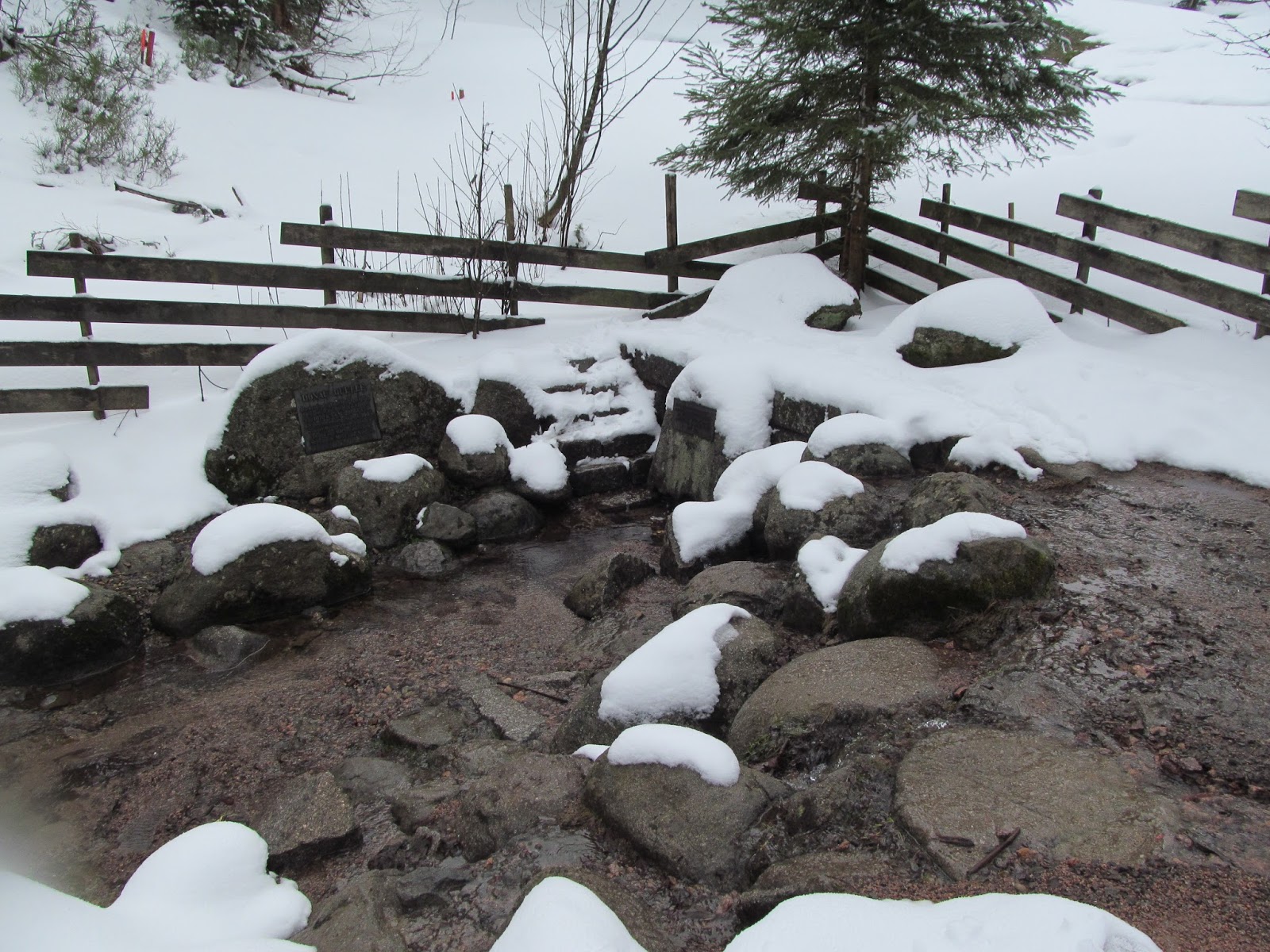 Другият извор си стои скътан високо в Шварцвалд и ние бяхме единствените, които направиха стъпки в снега в този ден, за да се снимат до него. Той е на долната снимка и е неизвестният.