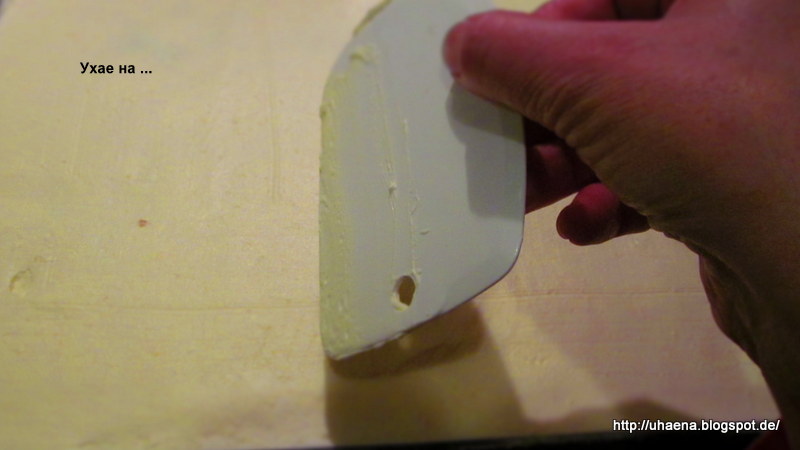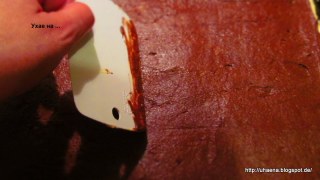 - Много внимателно и без натиск, разстилам кафявото тесто върху бялото. Подравнявам.