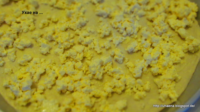 - От всяко едно кубче тесто разточвам кора с размер дъното на тавата.
