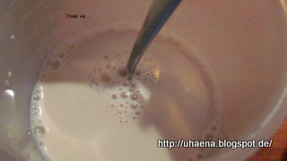 - Загрявам прясното мляко в микровълновата фурна. Топлината пробвам с пръст. Ако пръстът може да издържи в горещото мляко – температурата е много добра.
