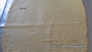 - Втасалото тесто разточвам на правоъгълник с размер 40х50 см.