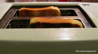 - Изпичам филийките на тостер.