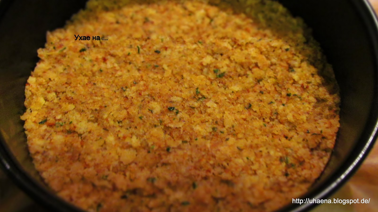 - Изстиналите филийки начупвам или минавам на блендер, за да станат на трохи.