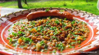 Днес ще си похапнем леща яхния, но с добавка от наденичка, защото ние не постим.