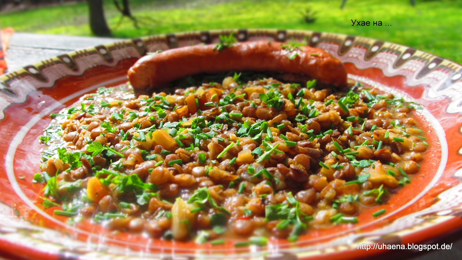 Днес ще си похапнем леща яхния, но с добавка от наденичка, защото ние не постим.