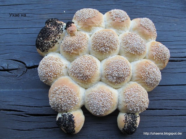 - Всички хлебчета потапям и в бял сусам, а само главата, ушите и крачетата – в черен.