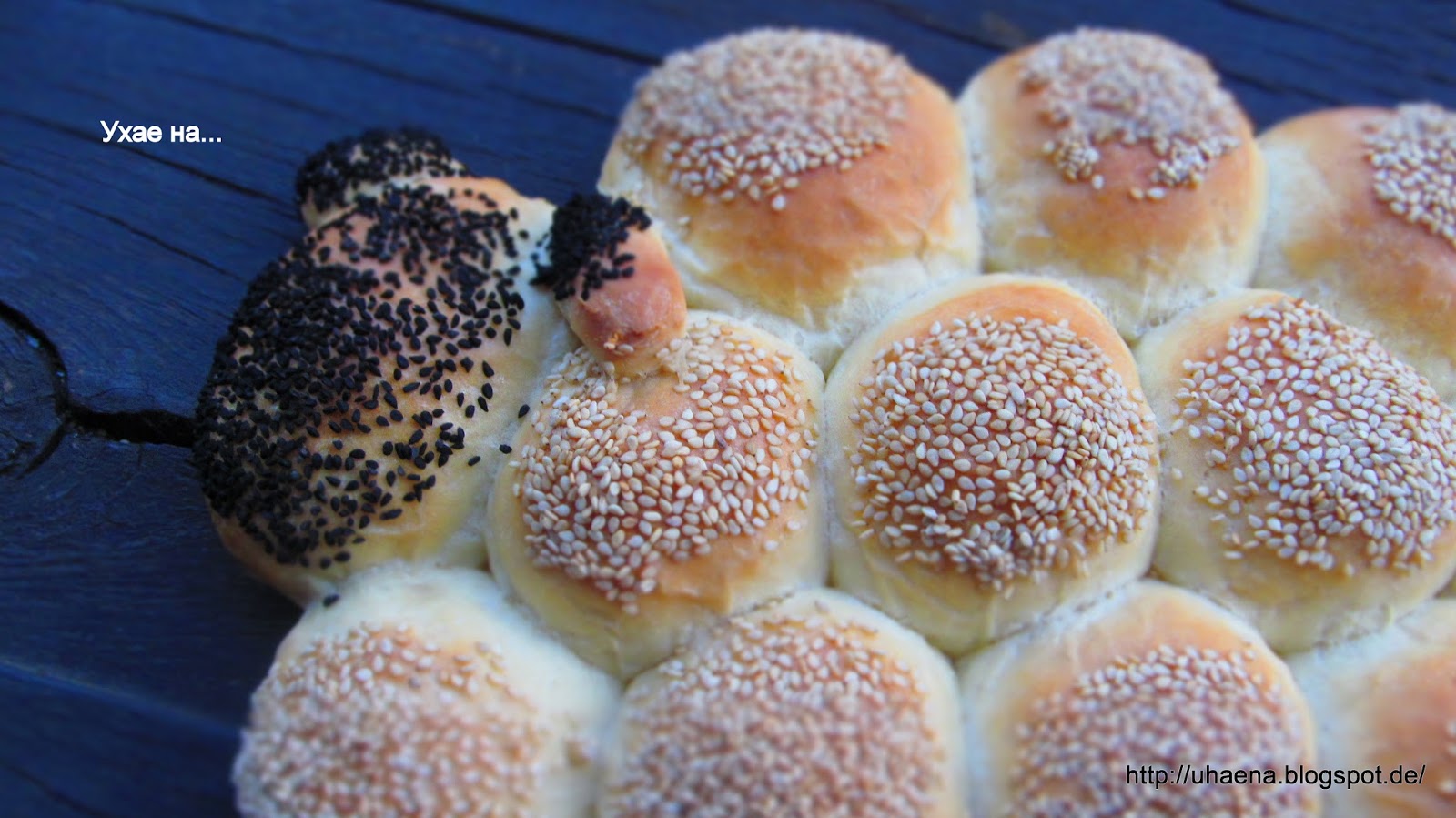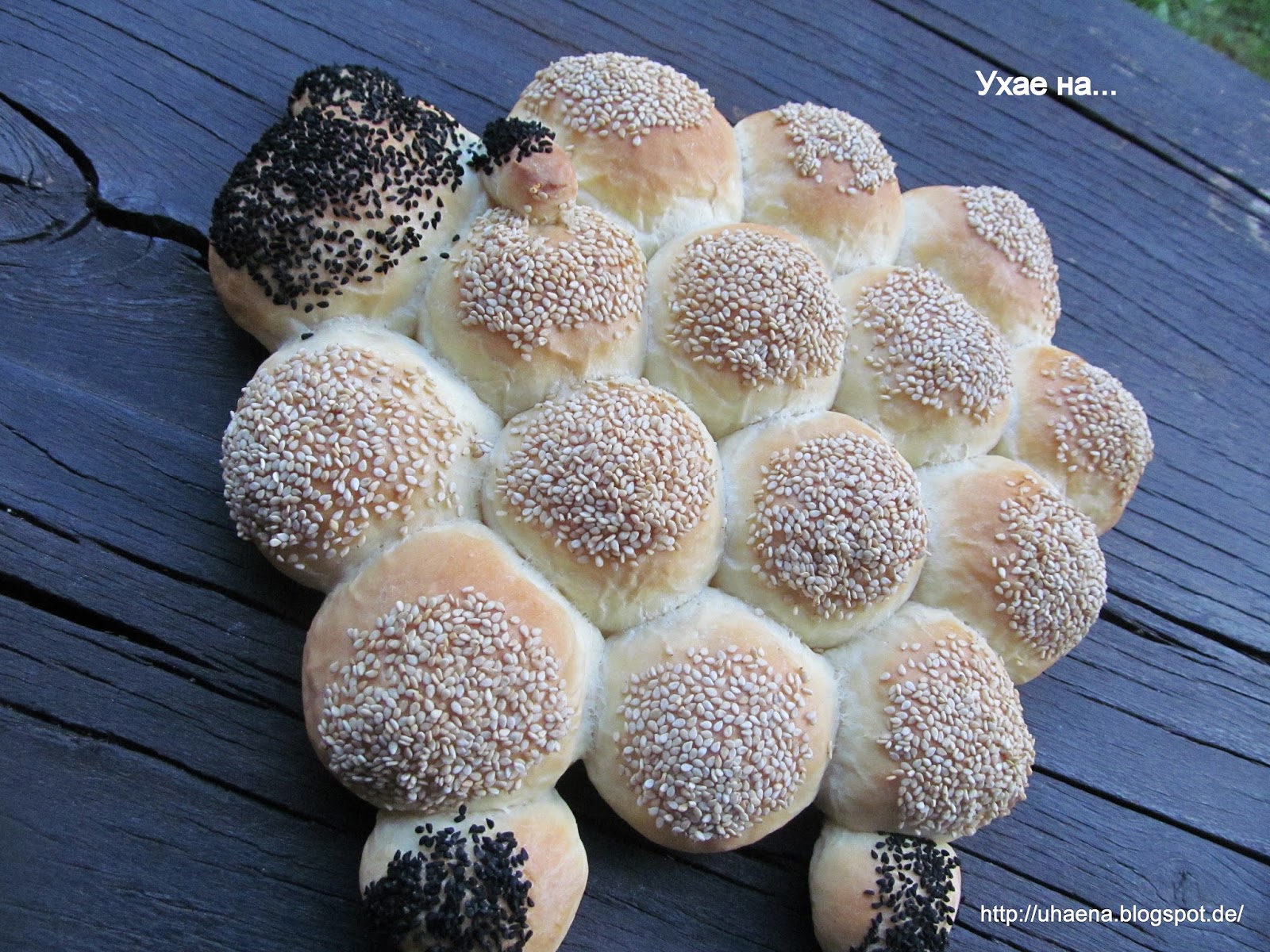 - Всички хлебчета потапям и в бял сусам, а само главата, ушите и крачетата – в черен.