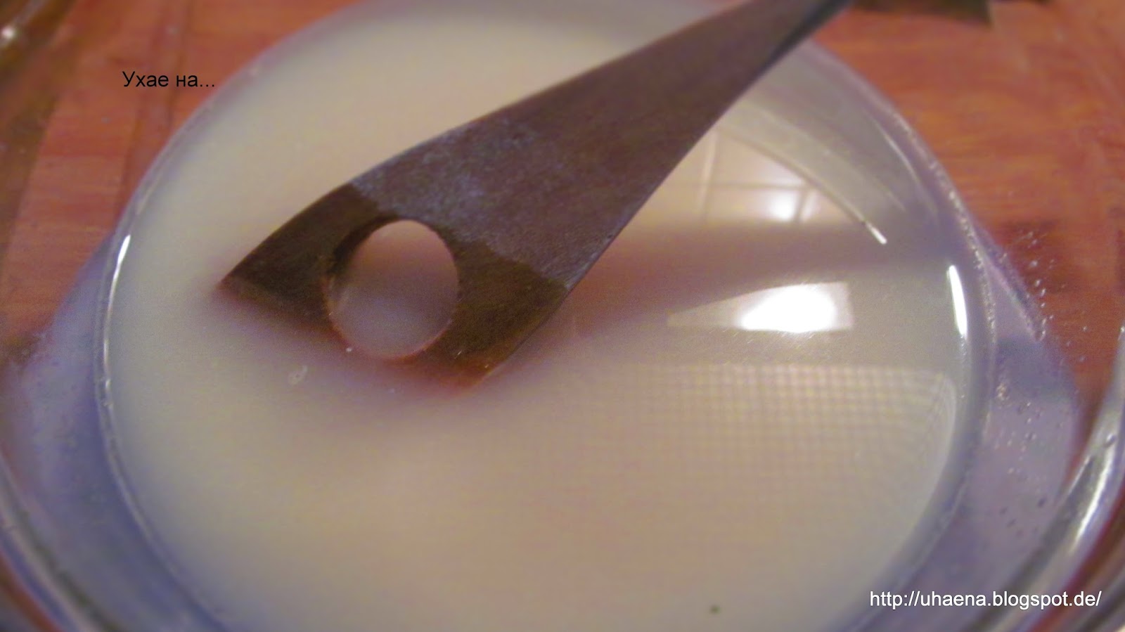 - В хладката вода добавям захарта и разтварям маята.