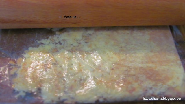 - През това време с помощта на точилка и в пликче раздробявам на ситно бишкотите.